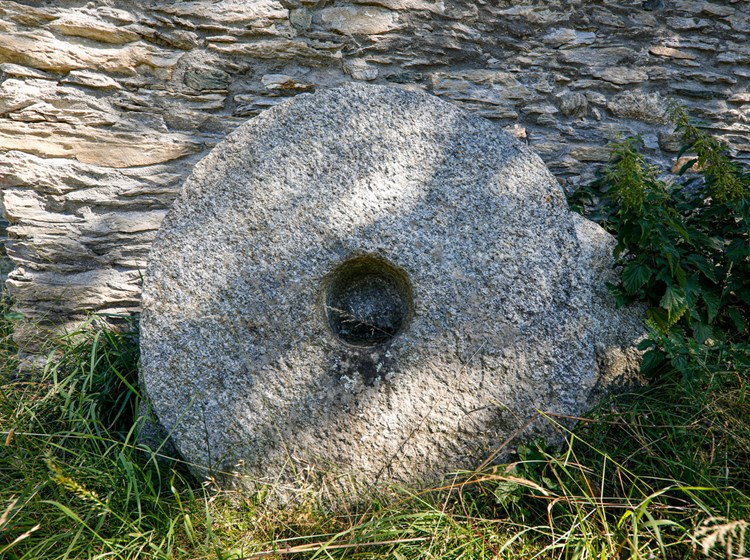 After years of neglect the mill has been restored. In the corner of the building, leaning against the wall, you can see a millstone of which a stonemason had started working at the time.