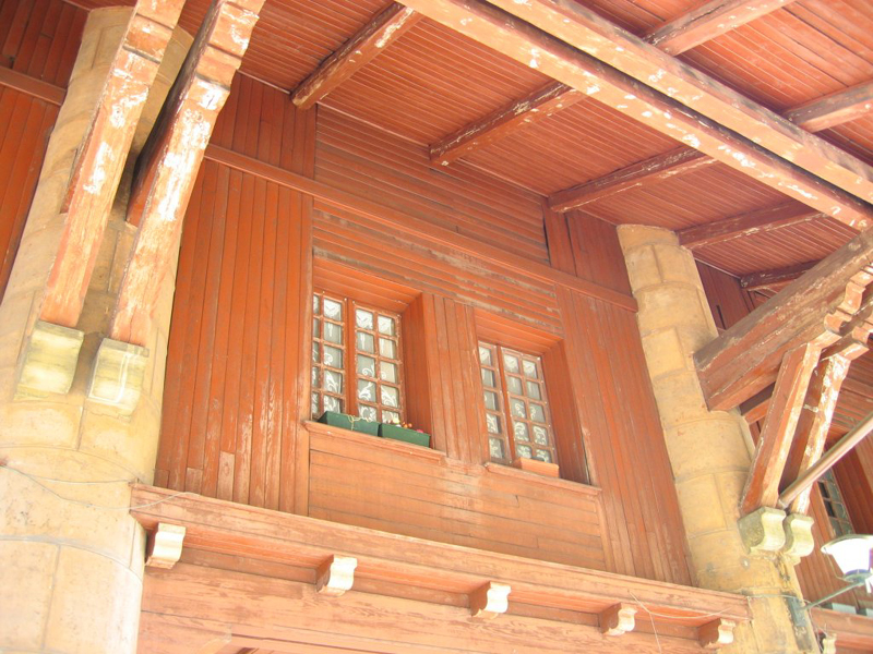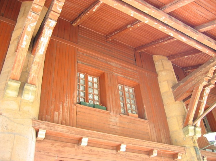 The Morgex station is the best expression of this architecture. The choice of details, from the lancet windows to fireplaces, dark-red painted wood lining, massive stone walls and complex wood shelves are inserted in a seemingly simple context. The prism base is divided, on the track side, by a platform supported by five slightly tapered cylindrical columns and, on the opposite side, by two light stone foreparts on a wooden background. A similar altimetrical division reflects this layout with spacious porticoes on the ground floor to create adequate covered areas.