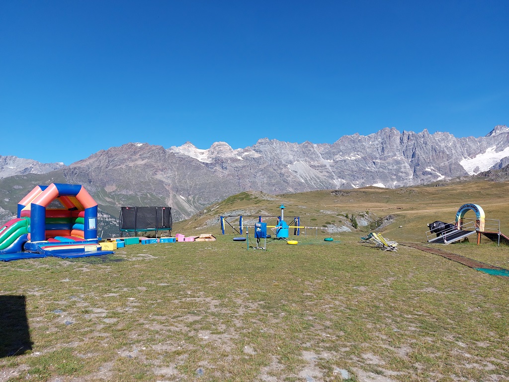 Very close to the arrival of the cable car (easy to access) an equipped play area allows maximum fun for children, giving adults the right amount of relaxation pampered by the crisp air of two thousand meters, in the presence of teh Grandes Murailles.