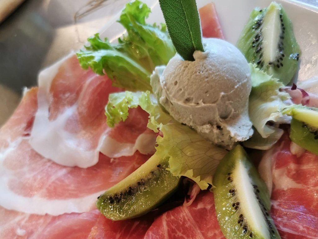 In the summer season a large outdoor terrace is set up. The products use raw materials deriving from Morgex farms, such as milk and flour. Fruit during the summer season, such as raspberries, blueberries and strawberries, are supplied by small companies of the Valle d’Aosta area.