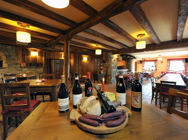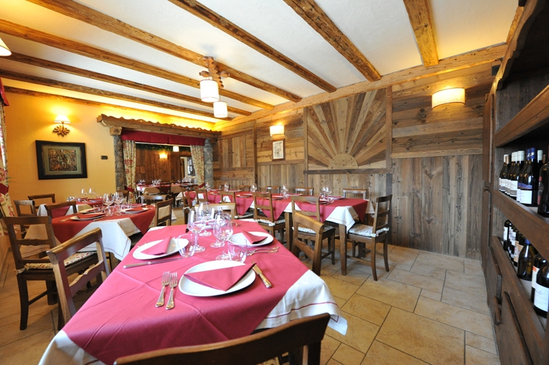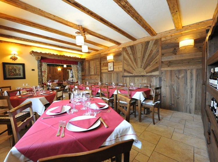 The restaurant, built with local stone and wood in a particularly cozy Aosta Valley style, features a fireplace in the dining room that creates a very pleasant and familiar atmosphere. A welcoming "taverna" allows guests to linger after dinner and listen to music. The restaurant specializes in dishes featuring bison, Angus, and beef. The homemade fresh pasta and the experience of Chef Olla are the restaurant's main strengths