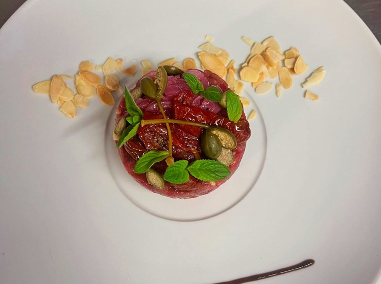Valdostana 2.0: mozzarella, Bleu d’Aoste, raw ham with genepy, fig jam