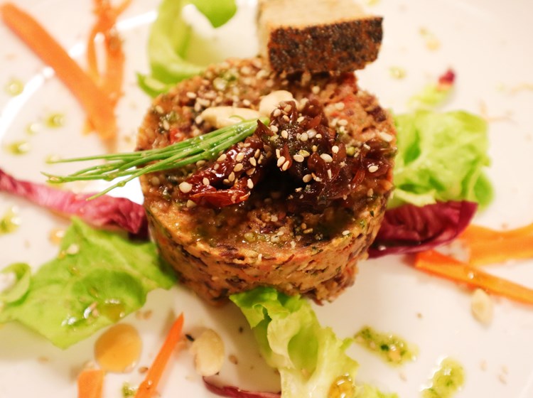 The Hirondelle hotel's vegan restaurant offers a different tasting menu every evening. The "à la carte menu" has been abandoned because the restaurant believes in a cuisine that must be, above all, a sustainable and a quality cuisine, avoiding waste, by choosing seasonal and local products as much as possible, respecting the environment, people and animals.