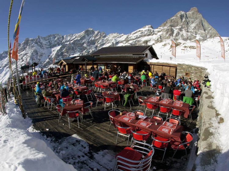 Historic chalet on the ski slopes recently renovated with large terrace in the heart of the Cervino ski area. Cuisine with attention to the details by the owner with dishes for all tastes based on fish, meat and the Aosta Valley tradition. In summer it can be reached on foot with a simple walk from Plan Maison or by jeep service.