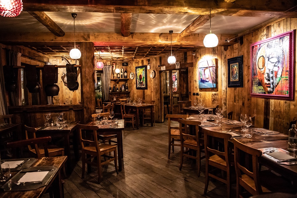 The restaurant is a reproduction of the interior of an old Aosta Valley Rascard completely covered in antique larch, offering typical Aosta Valley and international cuisine with, in addition, a varied choice of pizzas.