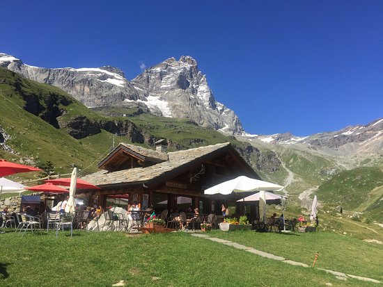 Typical Chalet Restaurant on the road to Matterhorn in a natural park. Reachable on foot in about half an hour walking, easily accessible by mountain bike and private jeep.