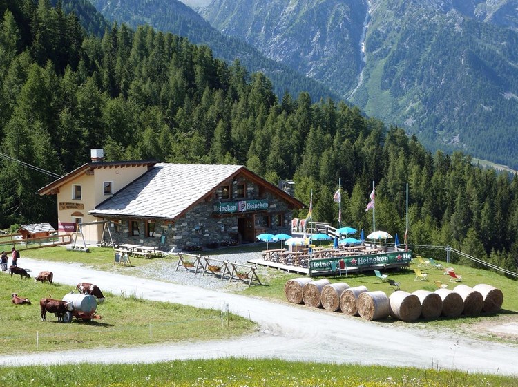 Lo Retsignon is structured on two levels with two different terraces : the front big one and the smaller one on the side, which has a wonderful panoramic view. The cuisine offers specialities which are part of mountain gastronomic culture like polenta concia and Aosta Valley soup and classic dishes like pasta, hamburger and fries and salads, to be enjoyed in a warm welcoming environment.