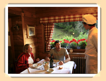 The restaurant of the hotel is in a rustic mountain chalet, surrounded by the greenery. The cuisine is simple, prepared and of excellent quality. It offers mountain local dishes with farm-to-table ingredients and italian dishes, prepared with love and passion by the chef Cristina.