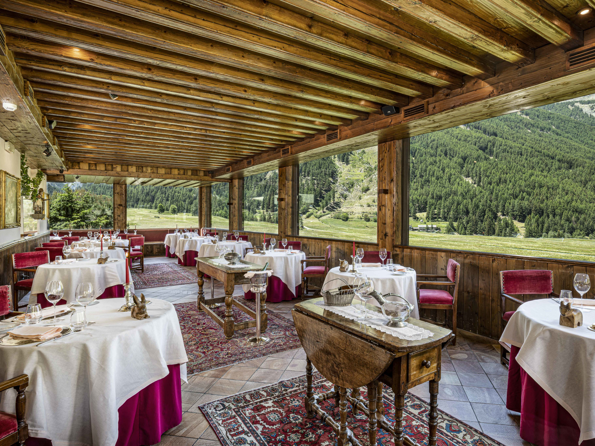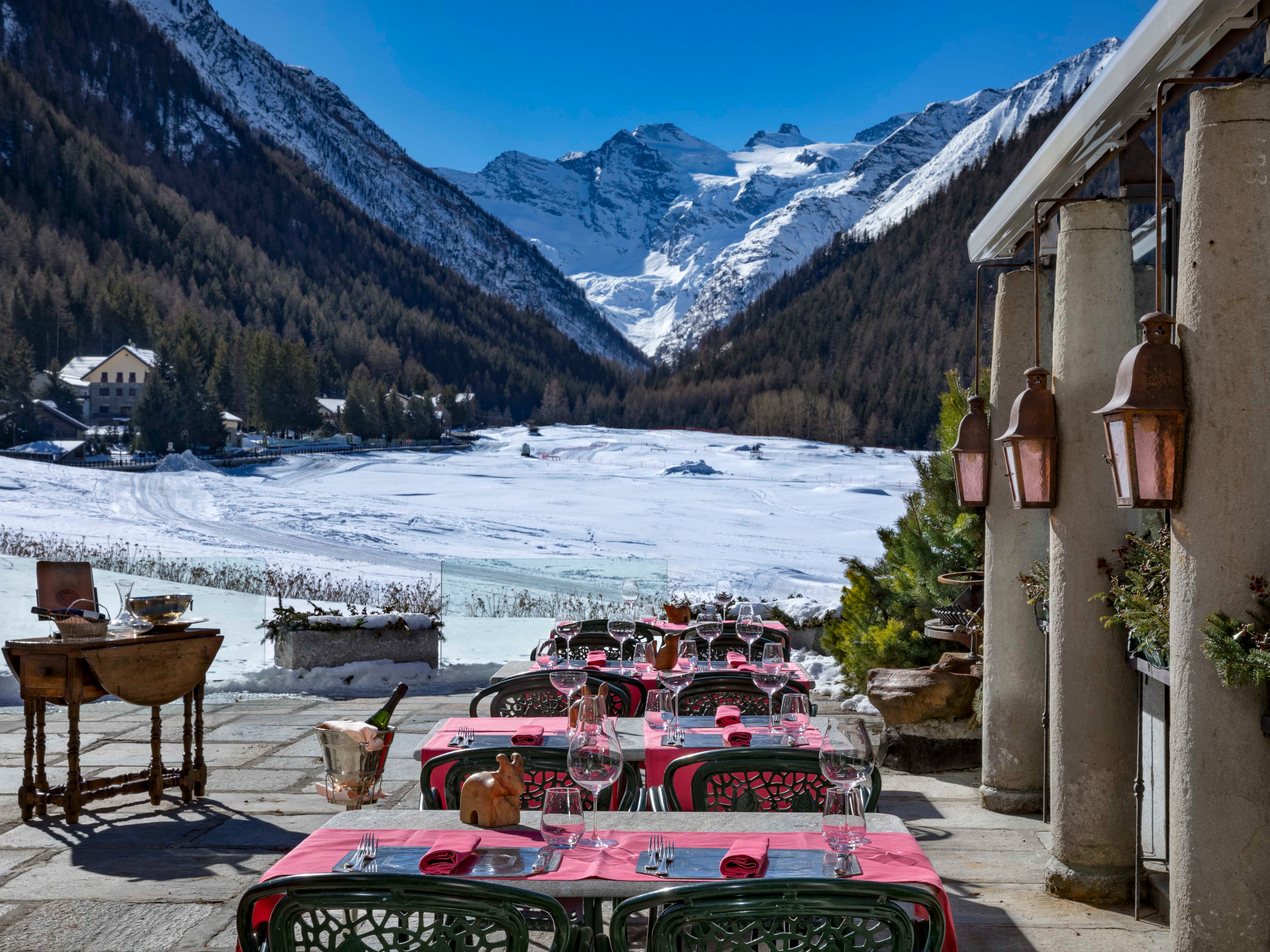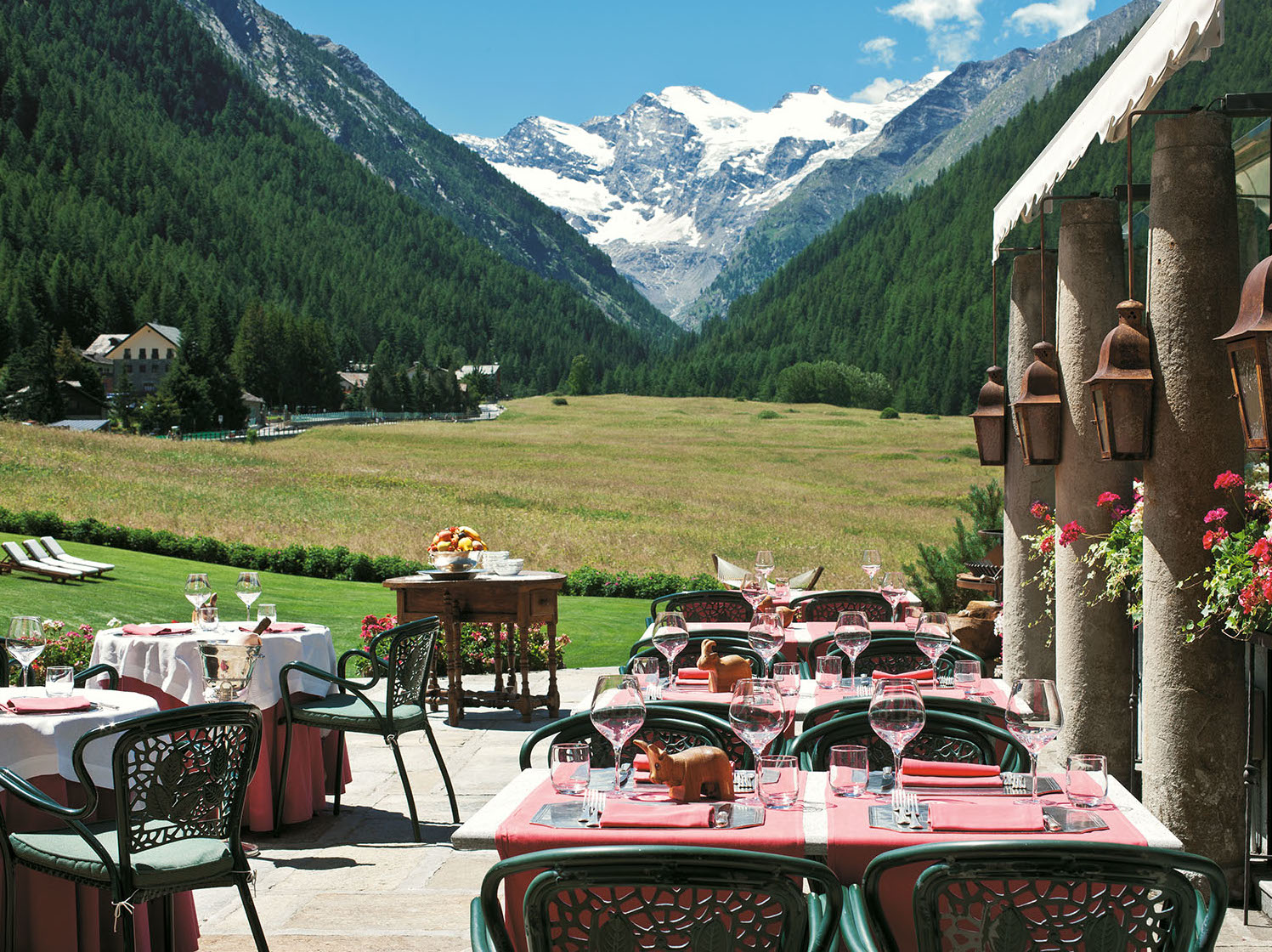 Weather permitting, guests may also dine on the stunning terrace with its views of the Gran Paradiso glacier.