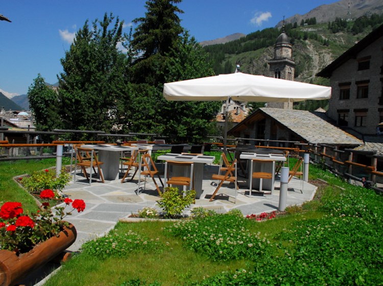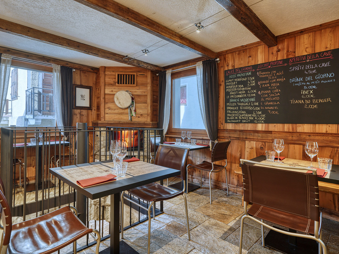 Restaurant and wine bar in the center of Cogne. Well-stocked wine shop and distillery on the central square of the town in a warm but modern environment. Open kitchen, déhors on the square and on the inside garden. Free entry.
