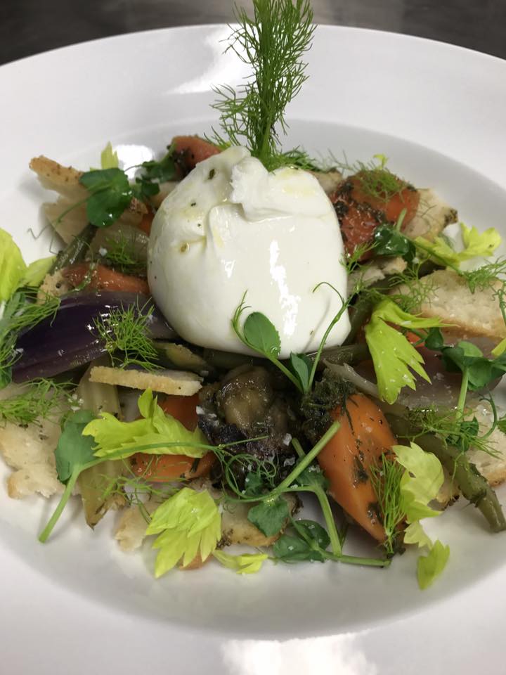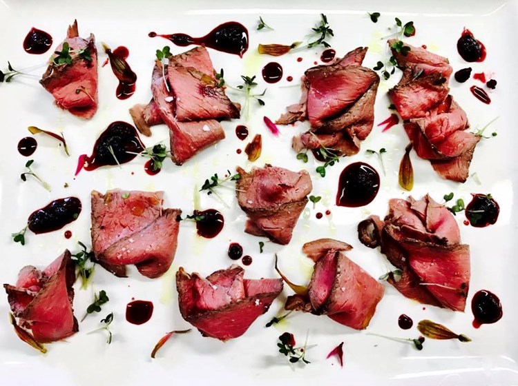 Beef Carpaccio, aged Toma cheese, sweet and sour reduced raspberry vinegar