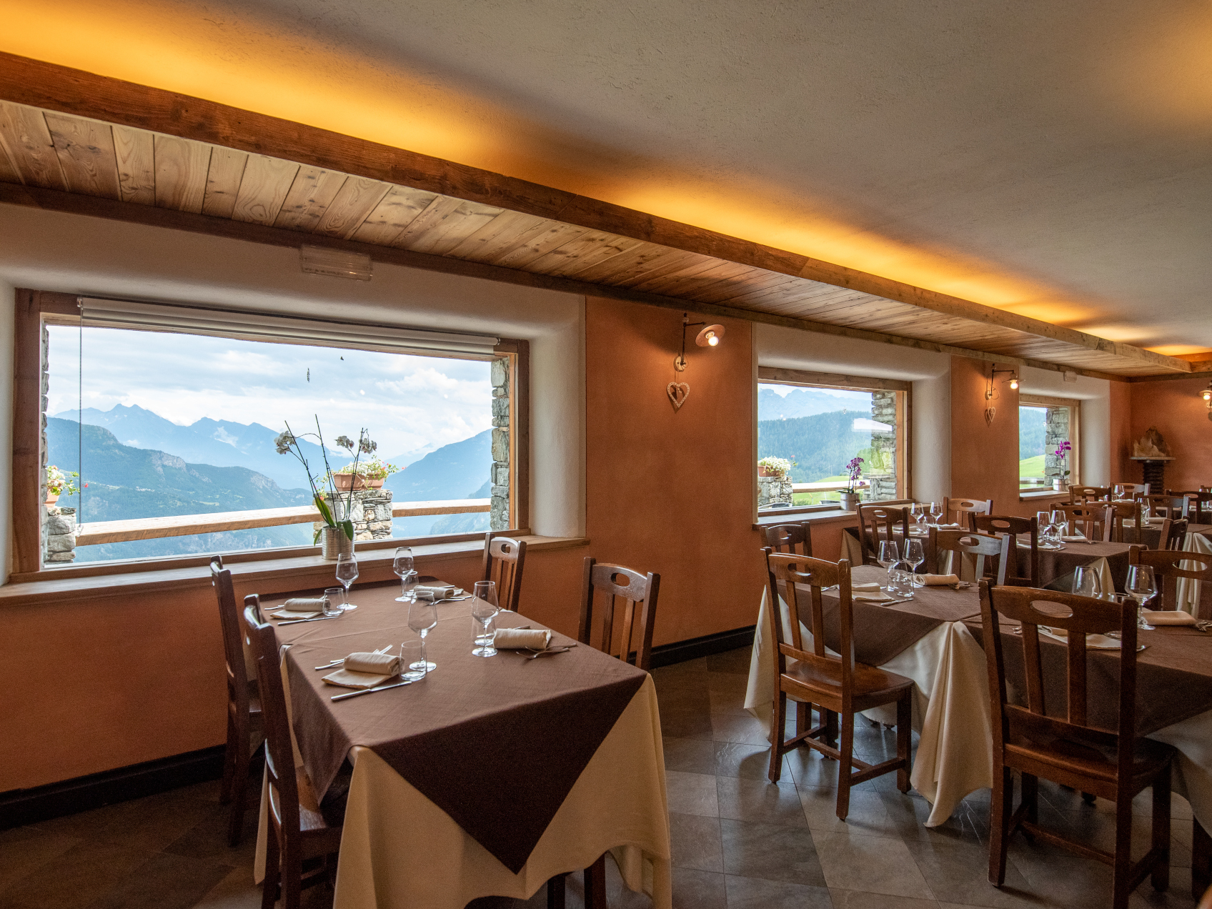 The restaurant offers Italian dishes, and special traditional dishes from Aosta Valley.
