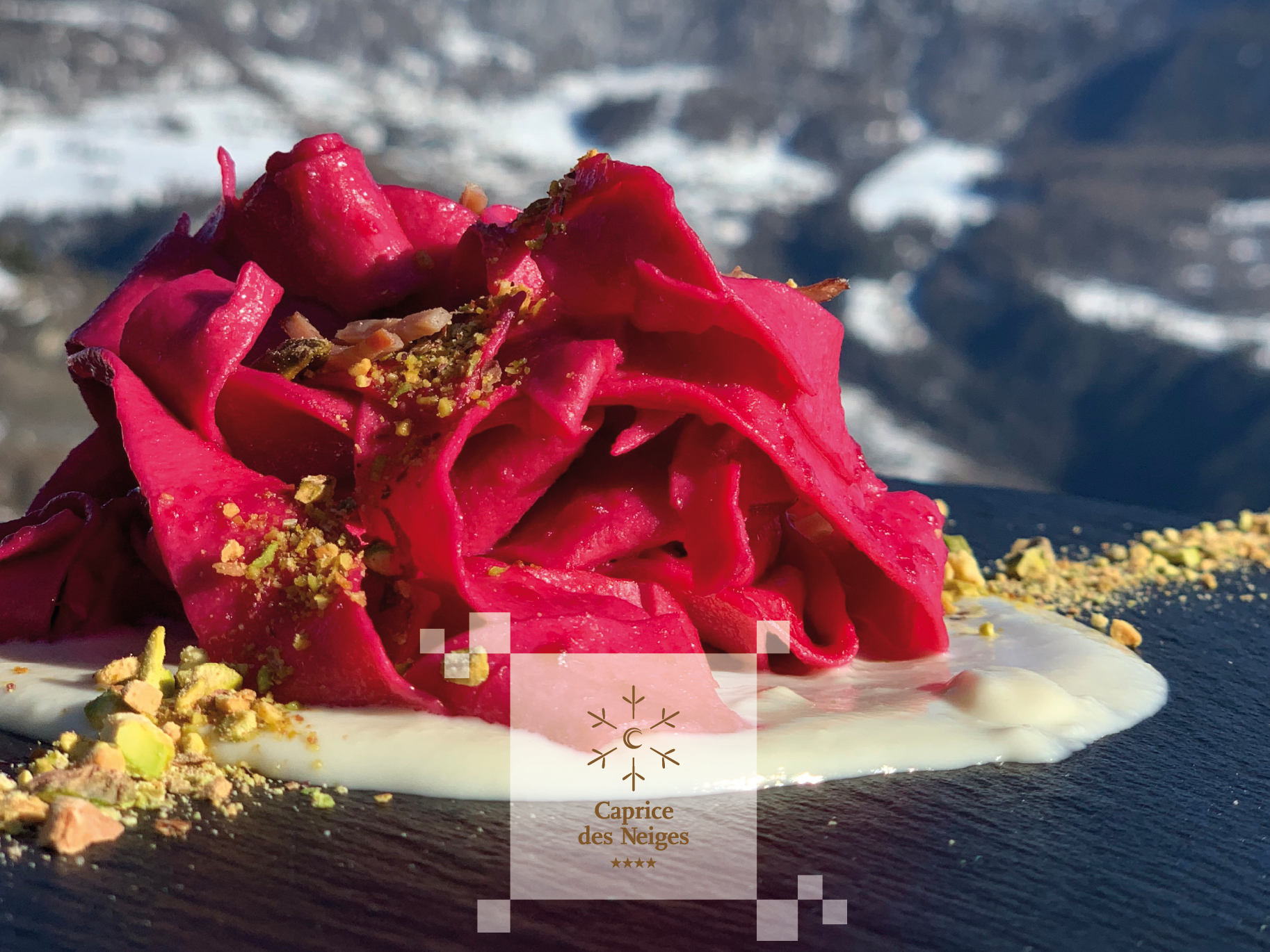 The elegant atmosphere and the mountain contest of the Hotel Caprice des Neiges are perfect for a lunch or a dinner with your family or friends, or for ceremonies and open air buffets (only upon reservation)