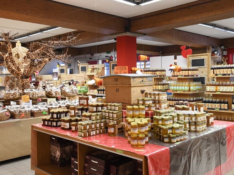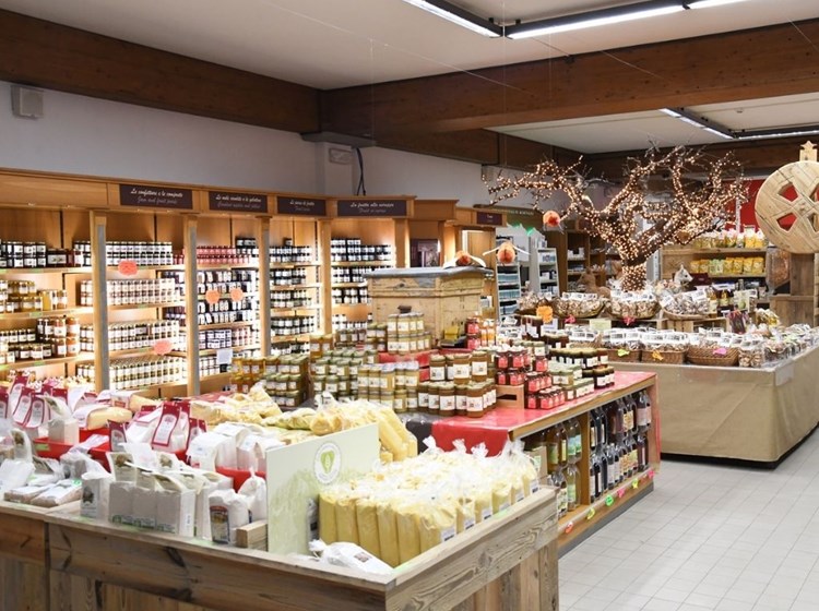 The shop in Saint-Pierre is the point of reference for those in search of Aosta Valley wine and food excellence: local apples, fruits and vegetables, apple juice and vinegar, cheeses, milk and yoghurt, ham and cured meats, wines, grappa and genepy, cakes and biscuits, honey and jams, sauces, and much more.