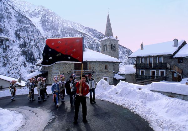 According to tradition, this carnival event was established in commemoration of the march through the Great St. Bernard Pass by Napoleon and his troops in May 1800, during his campaign in Italy. The carnival costumes then are traditionally an allegorical transformation of the uniforms originally worn by the French soldiers. A bear is also represented and symbolises the arrival of Spring; mule tails represent the winds and are used to banish baleful breezes; the mirrors on the costumes ward off evil spirits and the bright red colour, which symbolises vigour and strength, also has the power to dispel dark spirits, ill omens and misfortune. During the parade, the carnival characters enter the homes of local families; they dance along the streets and in the squares and eat and drink whatever they are given.