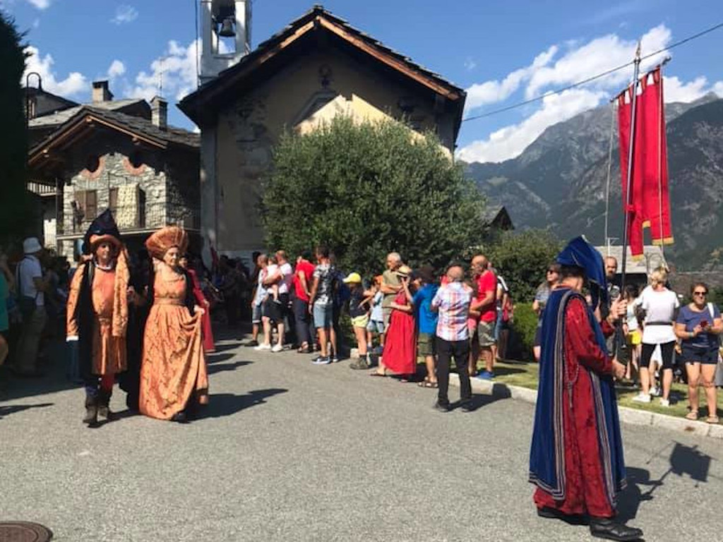 - In parade, the Groups will reach the Small Church of Ville where, in collaboration with the Compagnia Arteare, "La Giostra dei colori delle signorie di Challant" will take place.