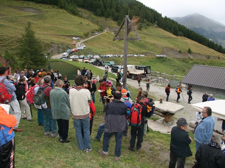 The Chaligne procession, which is also known as the Fourclaz procession, includes two processions which are distinctively separate and which share the celebration of the mass on the summit, at 2,608 m). In fact, the community of believers in Gignod, and those in the hamlets of Aosta and Excenex meet in the so-called “Plan des Débats” to reach Point Chaligne together.
