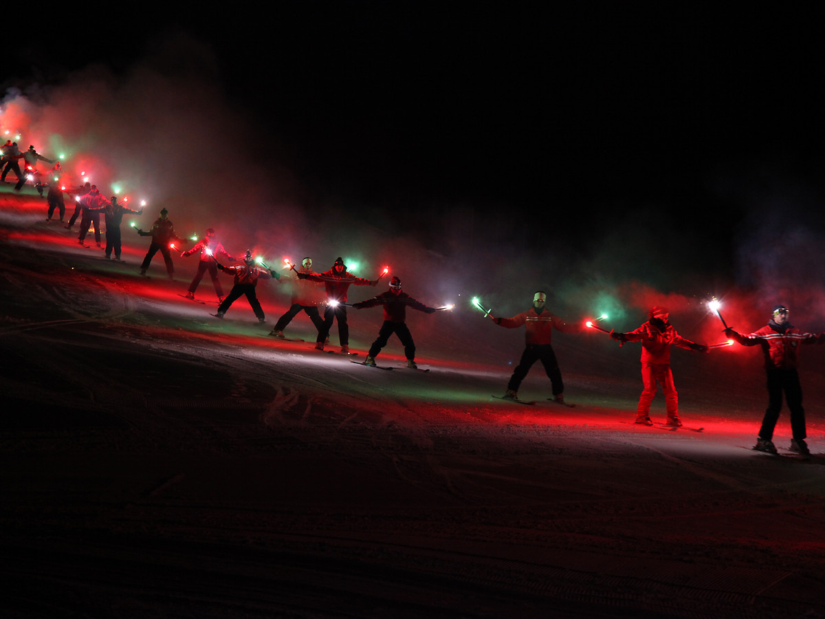 - Suggestive torchlight procession by the ski instructors