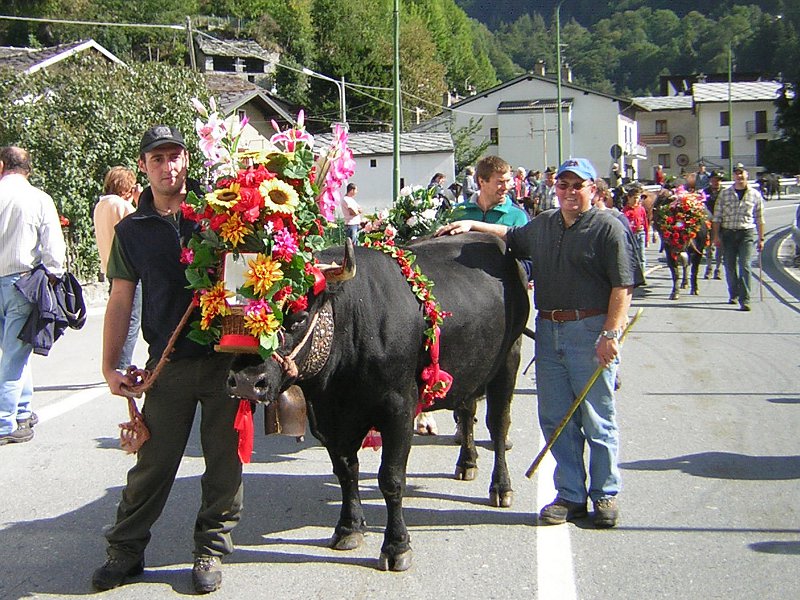 The parade, from Breuil to the hamlets of Maen in Valtournenche, is attended by farmers, mountain guides, ski instructors, mountaineers, the various local associations and some residents in traditional costumes.