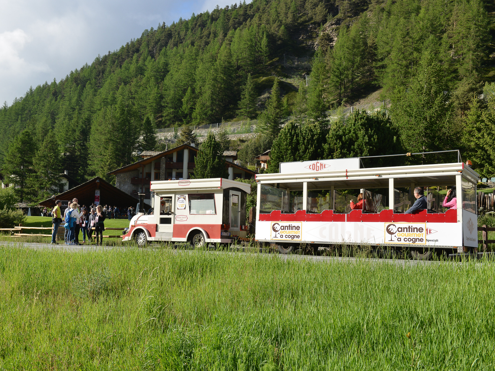 The food and wine tour can be done on foot, walking with a view of the Gran Paradiso massif, or with the fun “Wine-express” little train.