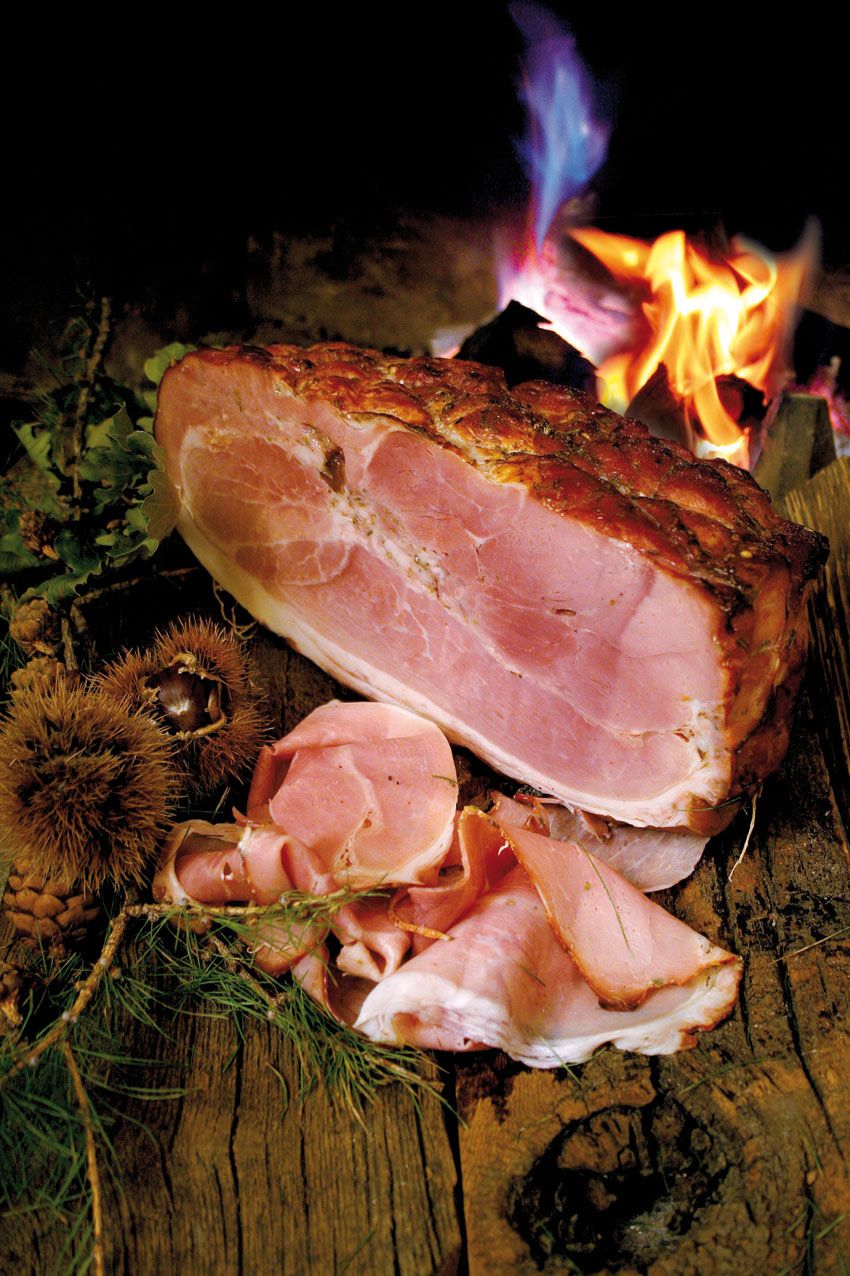 The main phases of the ham manufacturing process are preparation of a brine composed of salt, aromas and honey and the cooking, first steaming for 24 hours and then above the braziers, together with the watering of local craft beer (gluten-free).