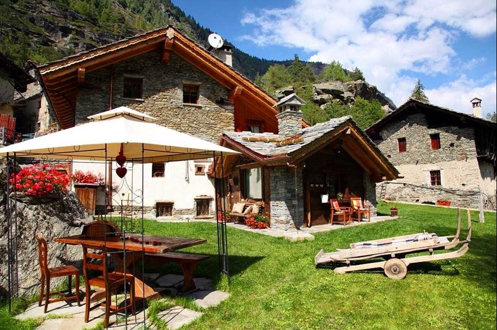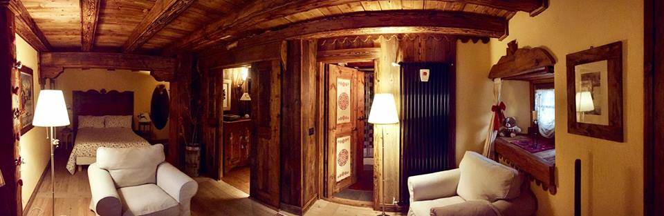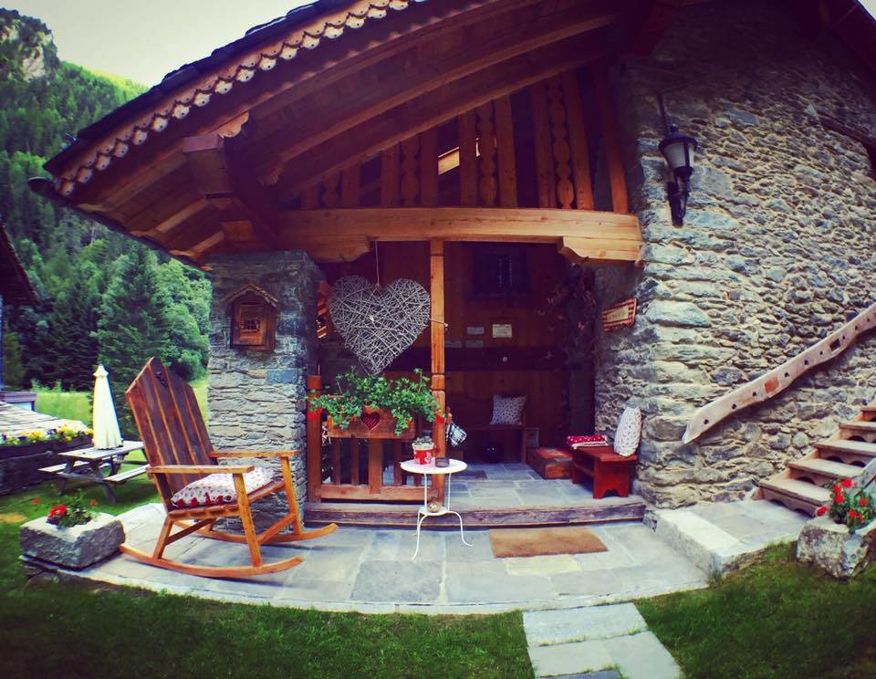 Lo Djoua de Toueno B&B is in the town of Arvier, suburb of Chamençon, at 1,250 m altitude. The house is a typical stone and wood building; it was recently renovated and dates back to the seventeenth century. It is surrounded by still unspoilt nature, with woods, pastures, and lovingly kept vegetable gardens. There are two double rooms available, as well as a large living room on the top floor, where guests can have breakfast while enjoying the splendid view of the Ruitor glacier. It will be pleasant resting before the fireplace in the evening with a board game, sipping on some good herb tea or grappa, or enjoying the sunset in the large green area in front. The decor sprang from the hands of the houses’ owners, who worked the historical old wood with passion and respect for tradition, creating a warm and cozy atmosphere. You will be surrounded by objects that speak to you softly: an old woodsmen’s sled, a carpenter’s table, a pair of wooden skis; the memories will take you far away…