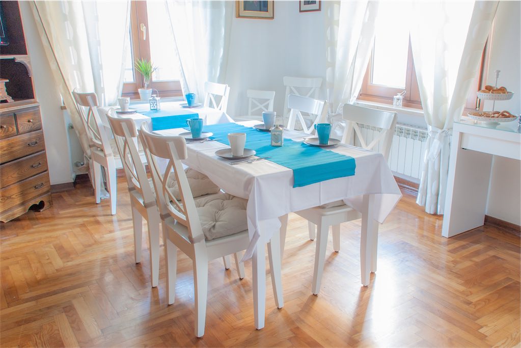 Breakfast is served in the living room on the first floor and, when the weather permits, in the garden.