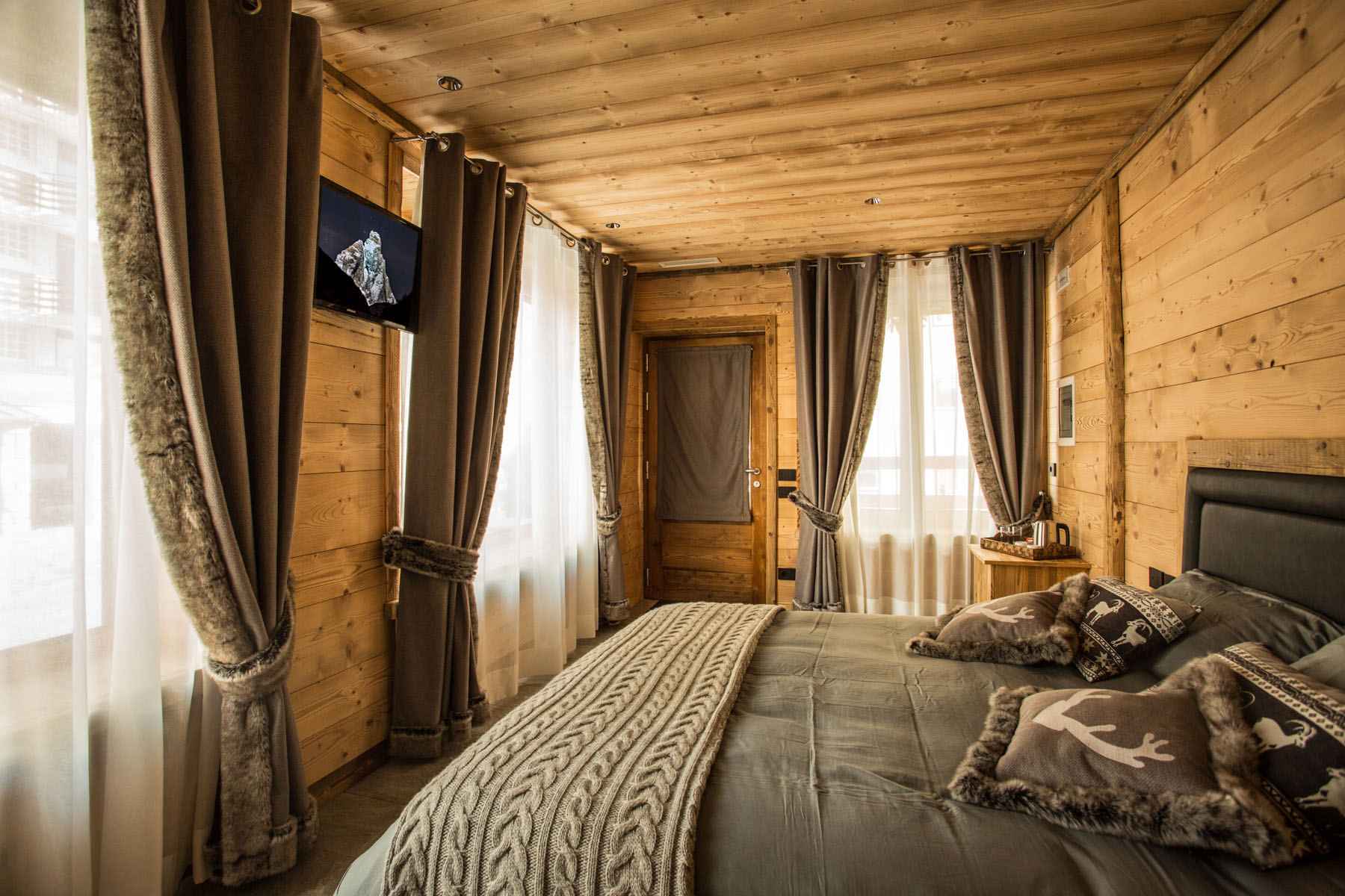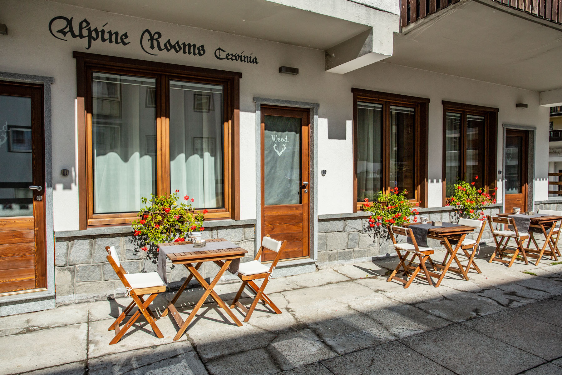 Alpine Rooms Alpine Rooms Cervinia Guesthouse is located at the foot of the Matterhorn, on a small, quiet private road. Just opposite the rooms, only 10 meters away, you will find the central, pedestrian street of Breuil-Cervinia. In the nerve center of the village you can find restaurants, cafes, pizza restaurants (where you can get pizzas by the slice), crêperies, grocery stores, clothing shops of all kinds, ski rentals and ski schools where you can book group courses or private teachers.