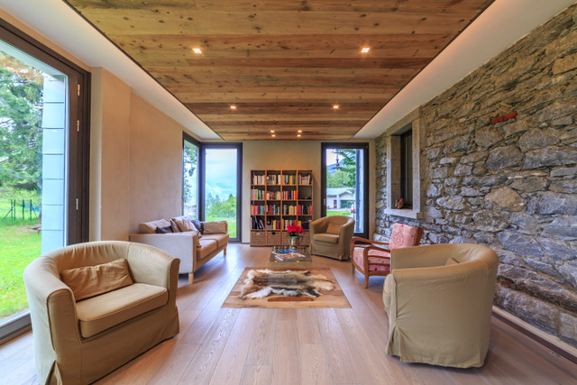 The Stazione dell’Acqua is located at the start of Valsavarenche in the municipality of Introd, at 1,140 metres above sea level. It is surrounded by the Gran Paradiso Nature Park and therefore immersed in the countryside. A room with large windows allows you to enjoy views over Mont Blanc.