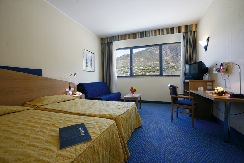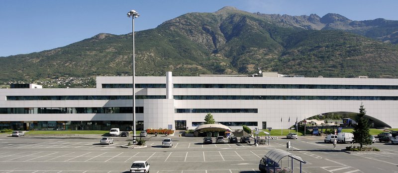 The Express by Holiday Inn , recently constructed, is in the lorry parking area 500 m from the local airport and the A5 Turin/Aosta motorway exit, Aosta Est toll booth.