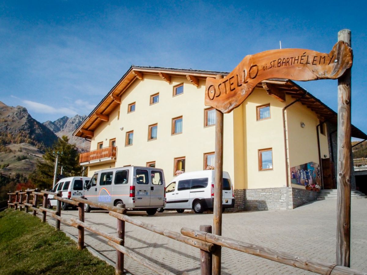 Turn left then right a little further on, just past the turning for the village of Nus (follow directions for Saint-Barthelemy). A few metres further on you will come to the regional road, turn right here then left a little further on at a hairpin bend. After several other hairpin bends, you will reach Saint-Barthelemy. The hostel is at the very beginning of the town, to the left of the regional road.