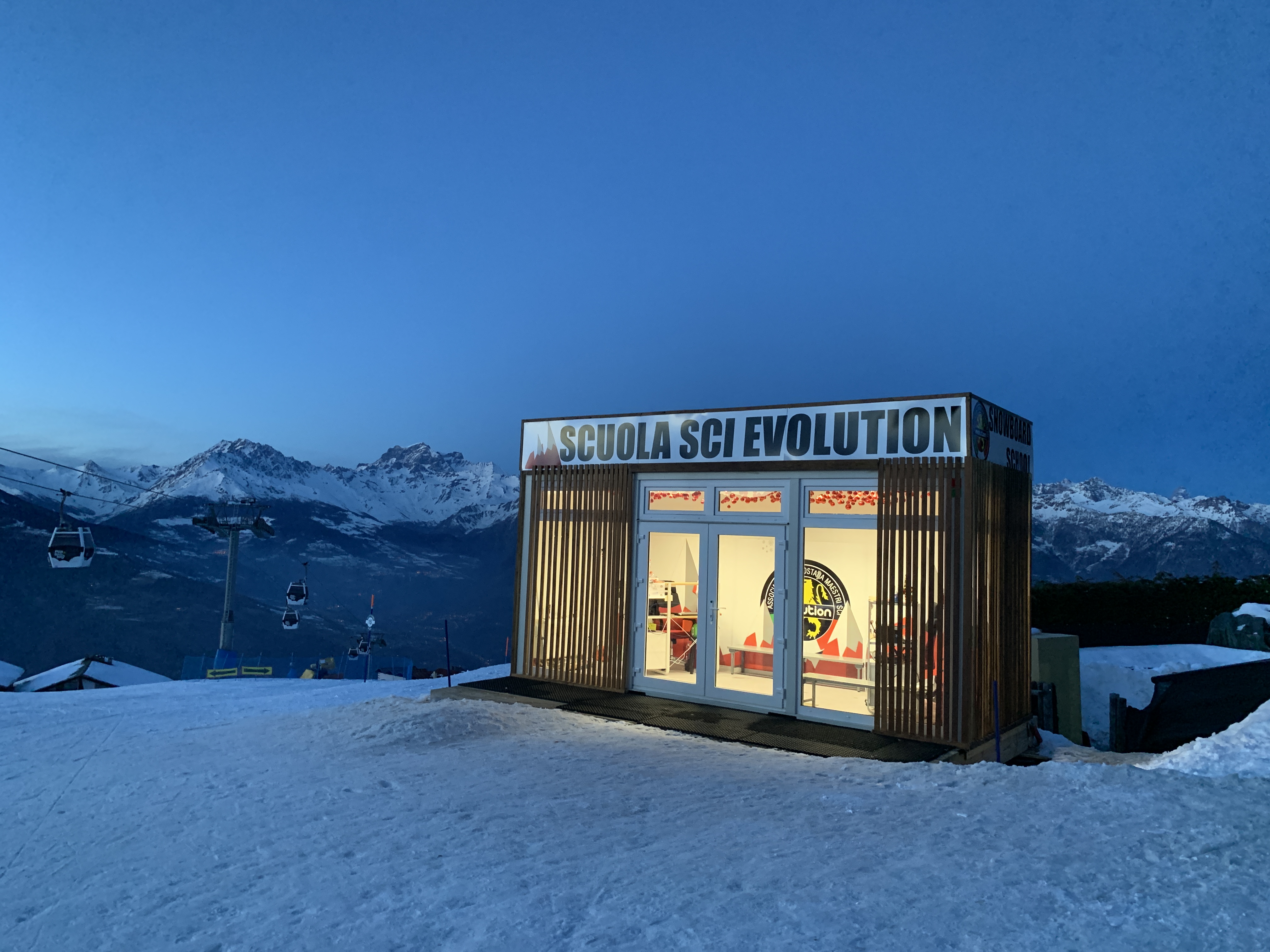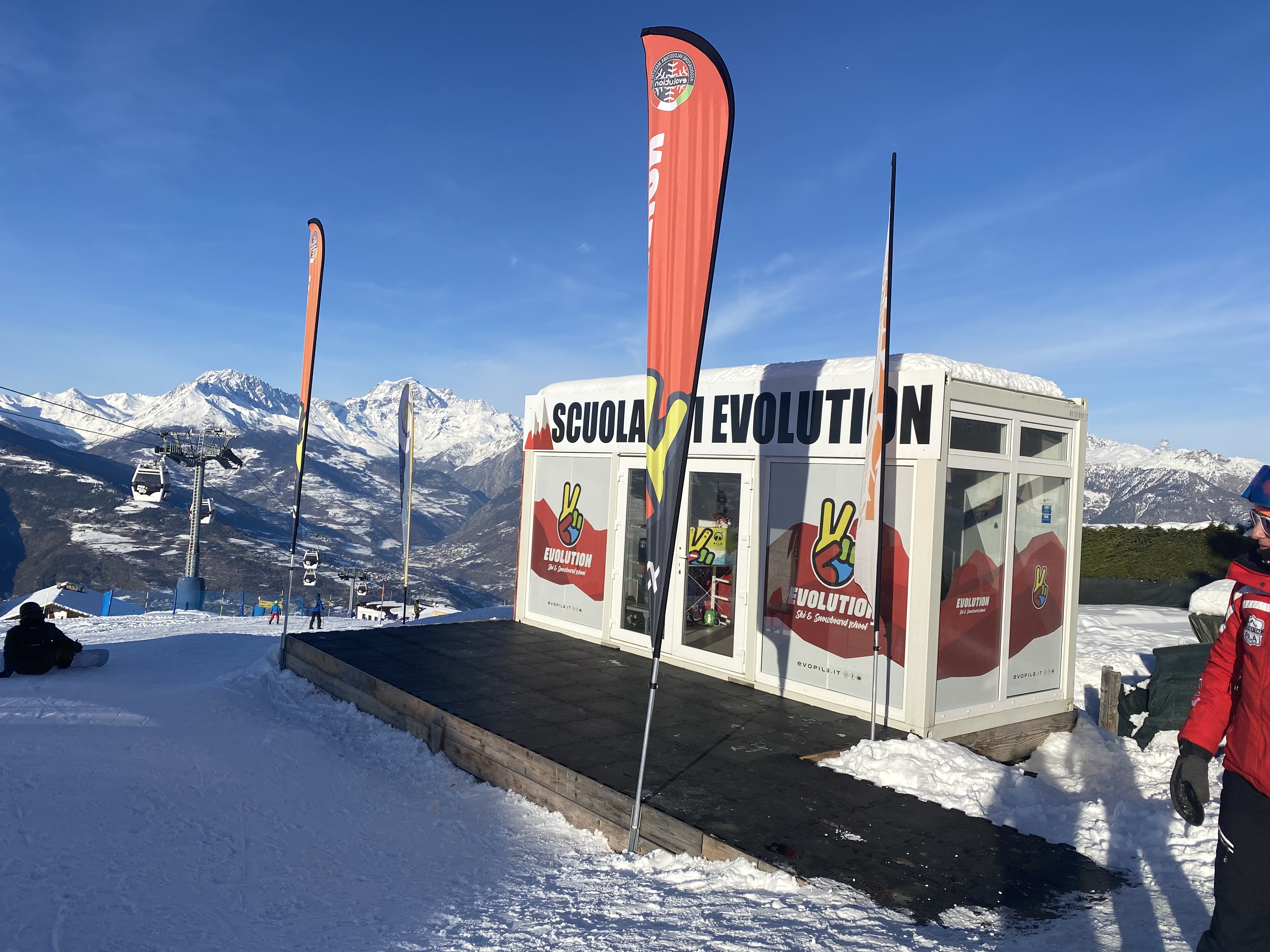 The school has two sales offices, one located in the centre of the village and the other, at the arrival of the Aosta/Pila cableway.