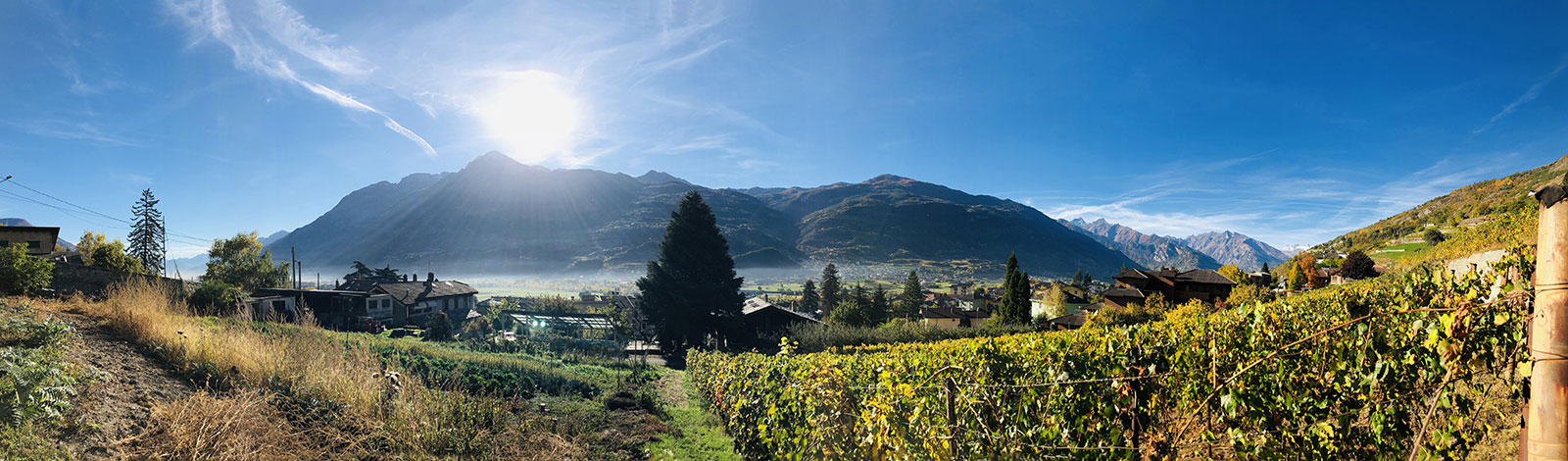 Les Petits Riens farm, with its vineyards, occupies a small corner of the panoramic hill of Aosta, at an altitude between 600 and 800 meters above sea level.