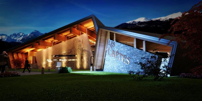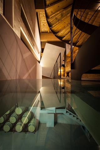 Since it lies in the Alps with a reference to the typical high-altitude architecture and, thus, it was conceived to protect wine, Rifugio del Vino has an authentic heritage of the mountain terroir. Its profile evokes a mountain massif, the same that becomes the symbol of Les Crêtes and distinguishes its brand. Under this large covered courtyard there is space for the production of wine and a wine shop, held together by an interesting itinerary for a visit.