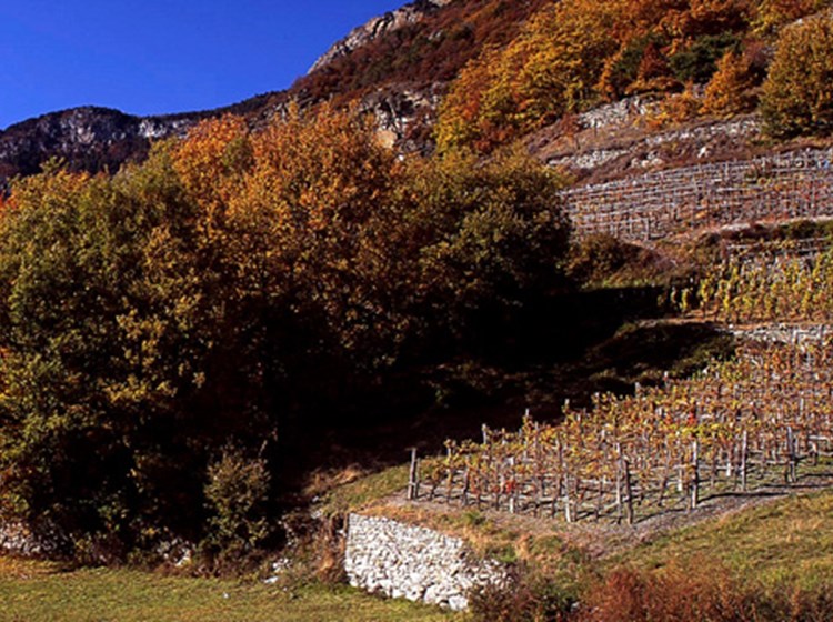 Valle d’Aosta DOC (Controlled Designation of Origin) wines of this production grow in a mountain environment with steep slopes and very fragmented vineyards, whose exposure is mainly to the south. In this Cooperative red grapes represent 40% of the total production, while white grapes represent 60%. Various types of wine are produced from these grapes, 15 (reds and whites) of which have the Valle d’Aosta DOC Denomination of Controlled Origin certificate, 2 spumanti with the brand ‘Quatremillemètres Vins d’altitude’, with a complete range of typologies, ranging from aperitif wines to dessert and “meditazione” wines (“meditazione” wines include sweet passito wines, red wines that have aged for a long time or important red wines). The philosophy of La Crotta di Vegneron is markedly devoted to the enhancement of autochthonous grapevines such as Petit Rouge, Fumin, Vien de Nus as well as traditional ones such as Muscat de Chambave and Nus Malvoisie. The company’s production also focuses on vines with more international names such as Pinot Noir, Gamay and Müller Thurgau that are perfectly suited to our soils and to our climate. The altitude of the vineyards of La Crotta di Vegneron is significant: from 500 to 850 m a.s.l., the microclimate is quite peculiar with a low amount of rainfall and high average daytime temperatures as opposed to cool nights, almost cold in the summer. These morphological and climatic characteristics favor perfect ripening of the grapes and limit the attacks of parasites. As a consequence there is very little need for treatments, always carried out and planned with the utmost respect for the environment.