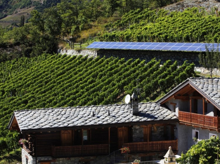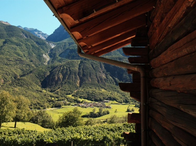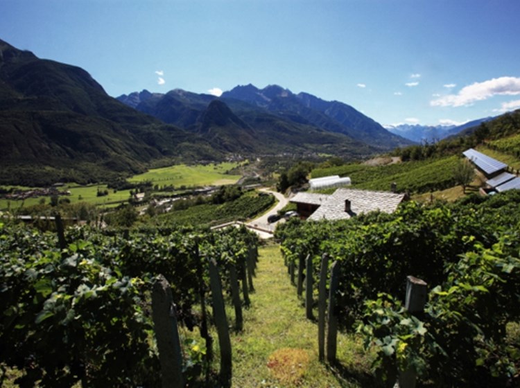 The La Vrille holiday farm and winery is located in the municipality of Verrayes, in the centre of Aosta Valley, at 670 metres above sea level. It is located along the route of the Via Francigena, in the heart of the Valle d'Aosta vineyards, and its terraces offer a splendid view of Mont Avic and Mont Emilius. The vineyards are mainly located in a natural amphitheatre and enjoy excellent exposure to the sun throughout the year. Pinot Noir (originally from the French region of Bourgogne) and the indigenous wines Vuillermin, Petit Rouge, Cornalin, Fumin and Chambave Muscat, a historic wine in the tradition of the Valle d'Aosta, are grown here, which is processed in the dry and raisin versions.