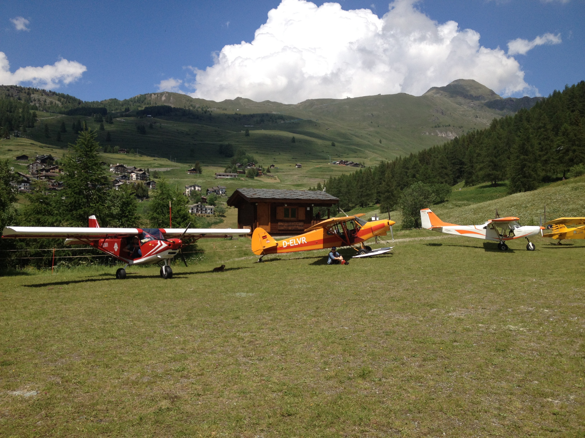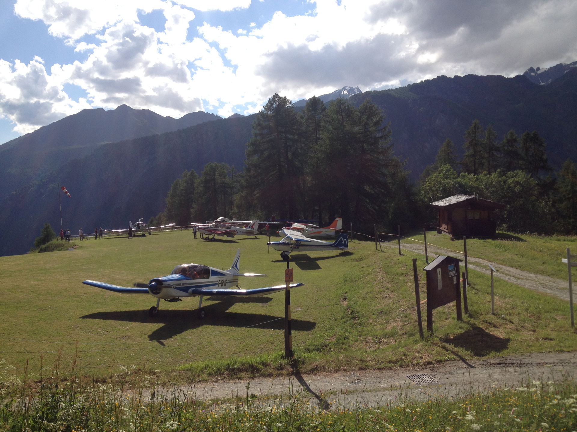 It consists in a grass strip slanting towards the valley bottom, with a windsock and a small wood service building.