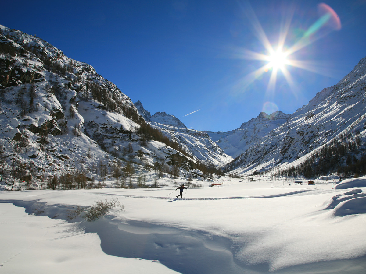 The Valsavarenche cross-country trails, totalling 13 km, run between Dégioz and Pont, the last village in the valley, at an altitude of 2000 metres. The Dégioz runs start out in front of the town hall and the Visitors Centre of the Park and wind their way alongside the torrent, past traditional villages, while in Pont there are 6 km of runs authorised to host competitive races
