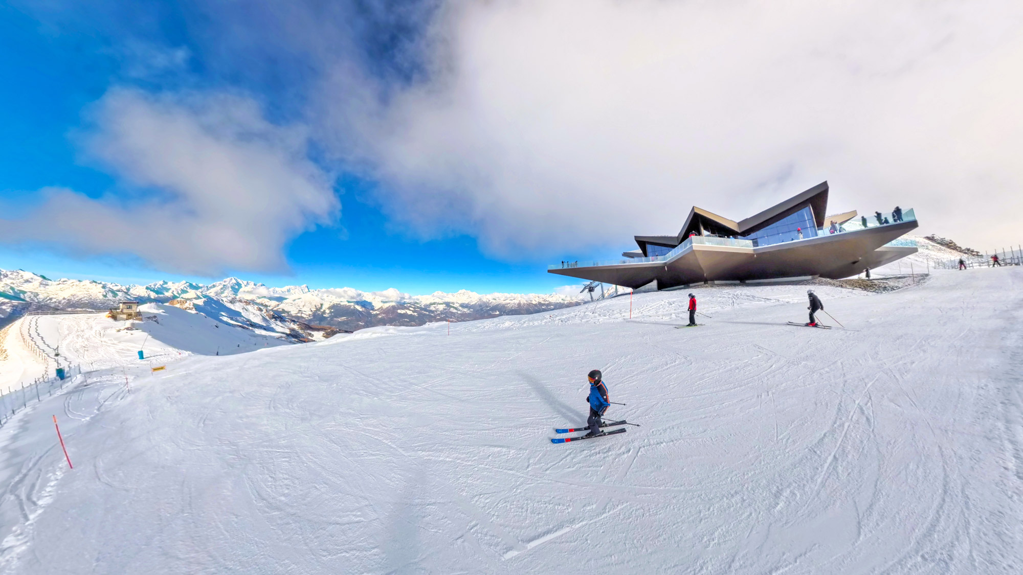 Pila overlooks the city of Aosta, with which it is linked by an 18-km-long scenic road that is always open and by a brand-new eight-person gondola lift that will take you to the runs in just 18 minutes. A fully “skis-on” resort, Pila offers direct access to the lifts from all the hotels and tourist apartments.