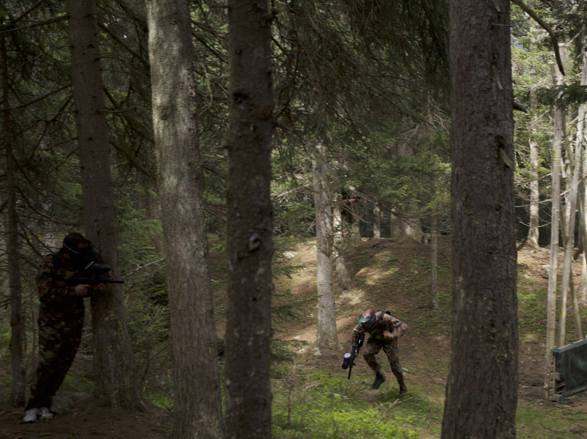 The Paintball field is completely surrounded by woods in the Chantorné area. Shelters and obstacles make games even more exciting.