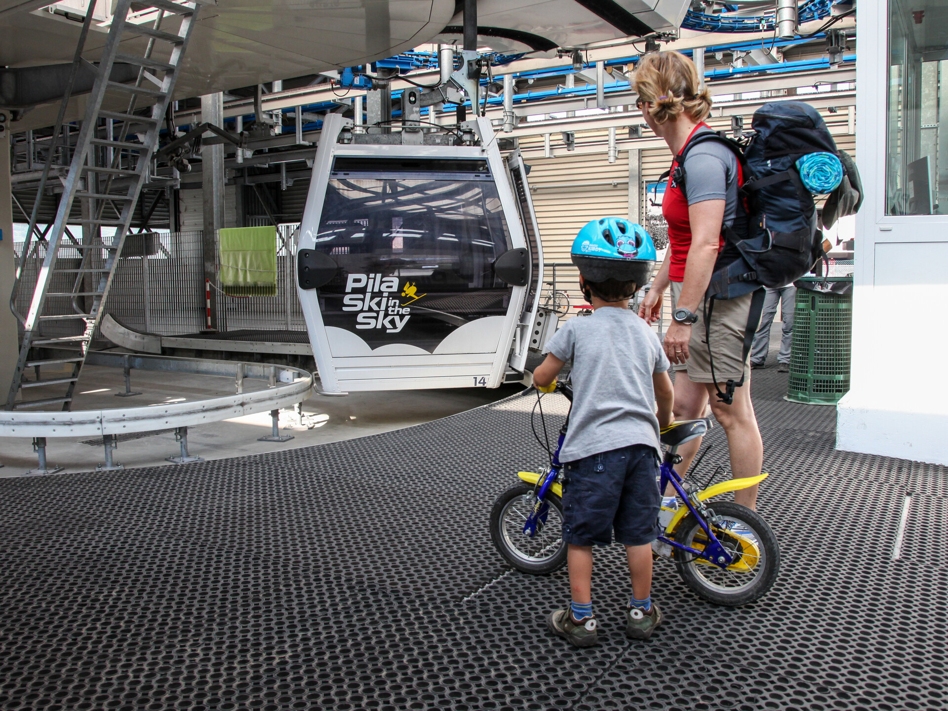 - the Pila–Stella gondola arrives at its top station after the intermediate stops of Gorraz and Couis.