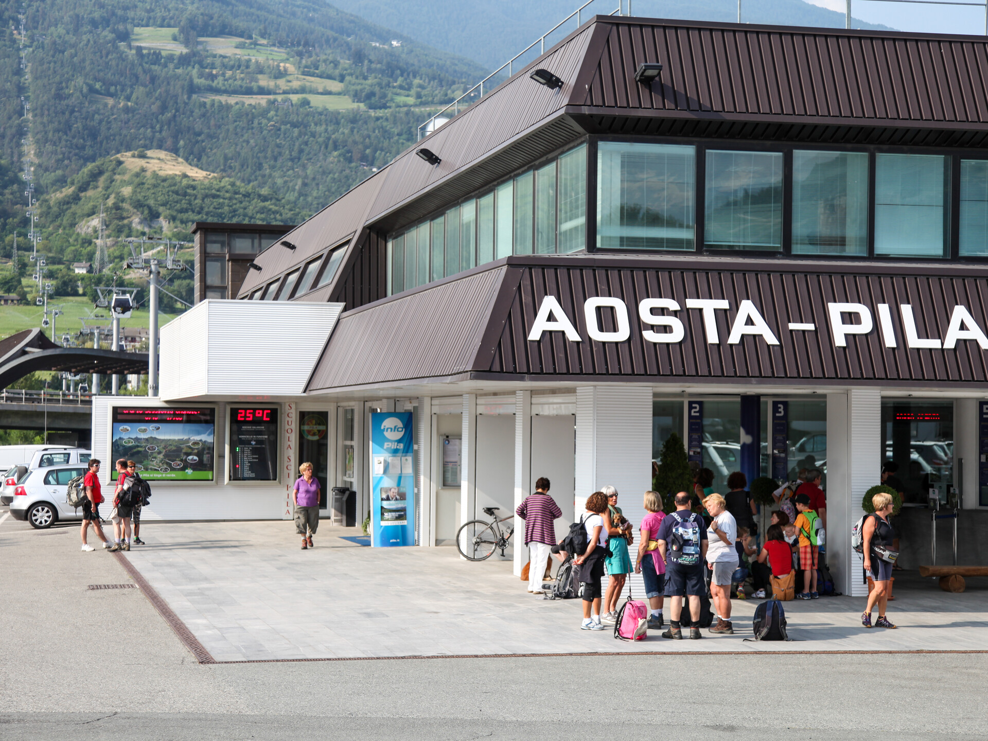 - the Aosta–Pila gondola reaches its final station after the stops at Les Fleurs and Plan Praz