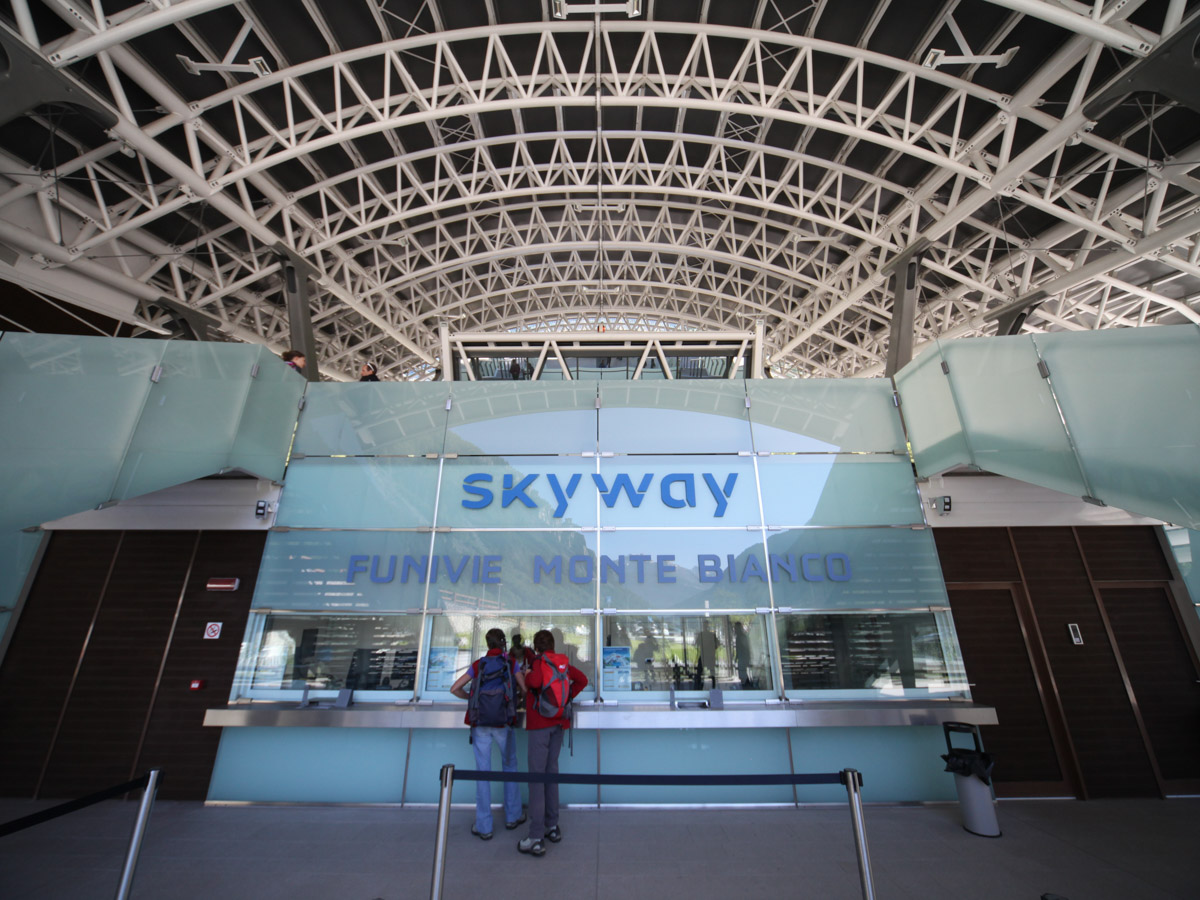 The intermediate station, the Pavillon du Mont Fréty, offers a panoramic view on the opposing sides of the Val Veny and Val Ferret, enhanced by the large glass surfaces of the buildings. On the outside, there is a botanical garden, several routes to get close to nature, a solarium and a playground area Skyway for kids; on the inside, there are two restaurants, a bar, a 150-seat meeting/ events/cinema room, a Mont Blanc crystals exhibit, a small shopping center, and a winery. The old station has been converted into a museum area.