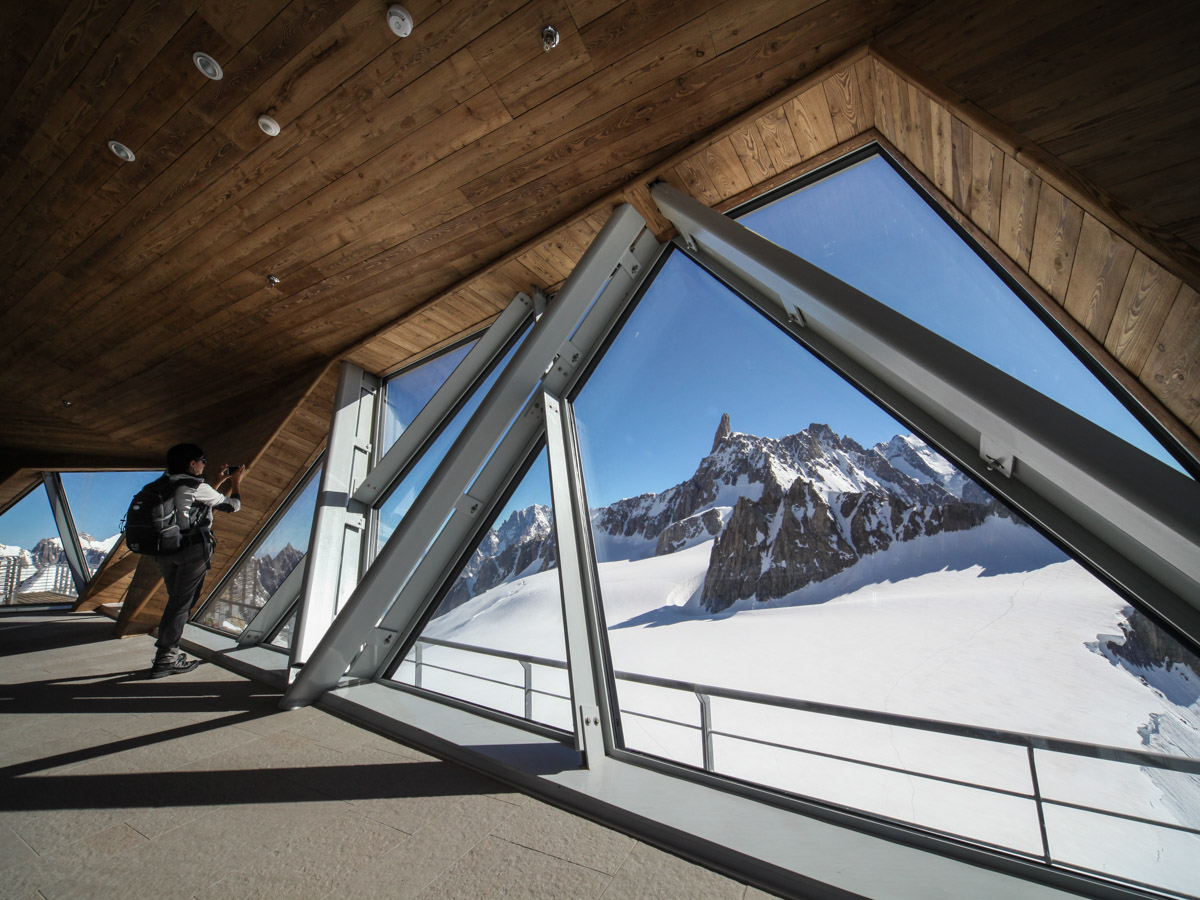 The last station is Punta Helbronner; it is shaped like a crystal and soars upwards with cantilever terraces.