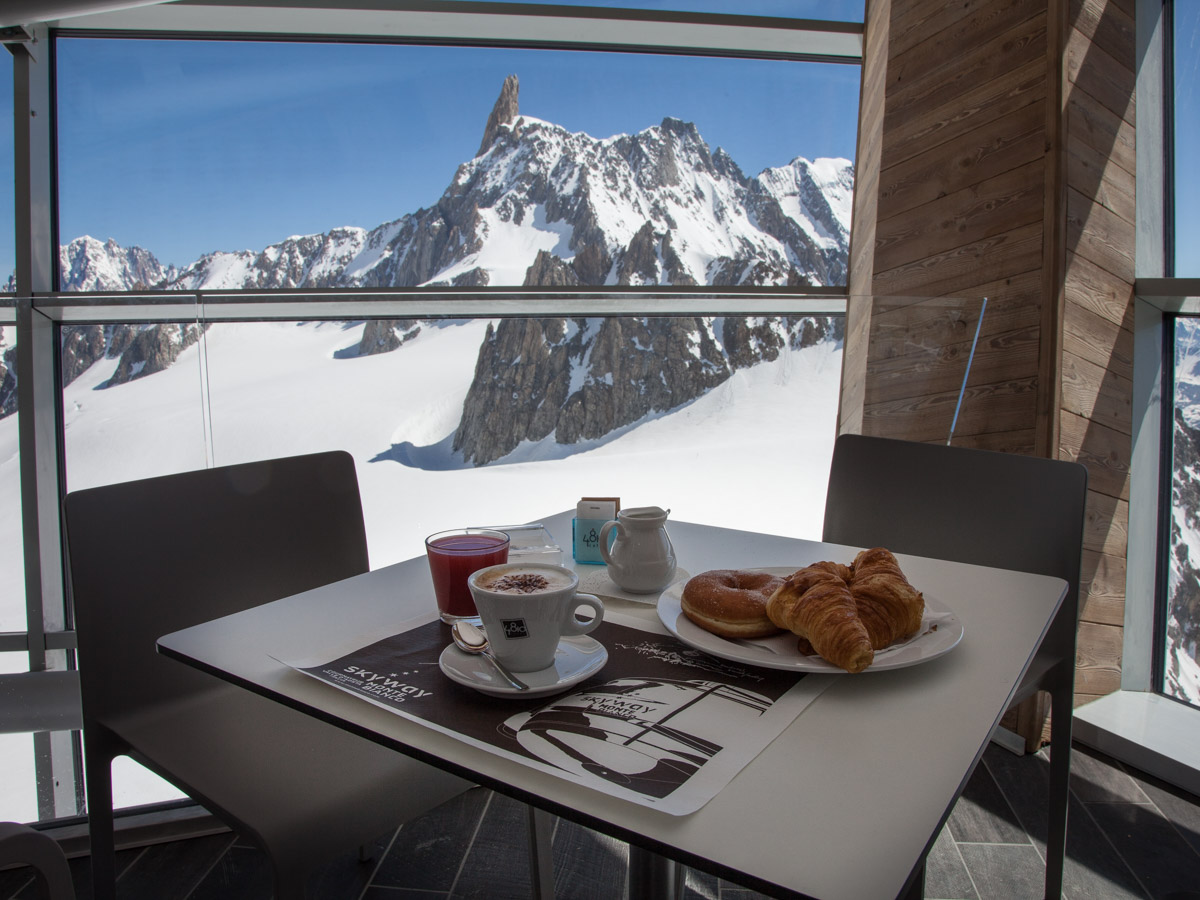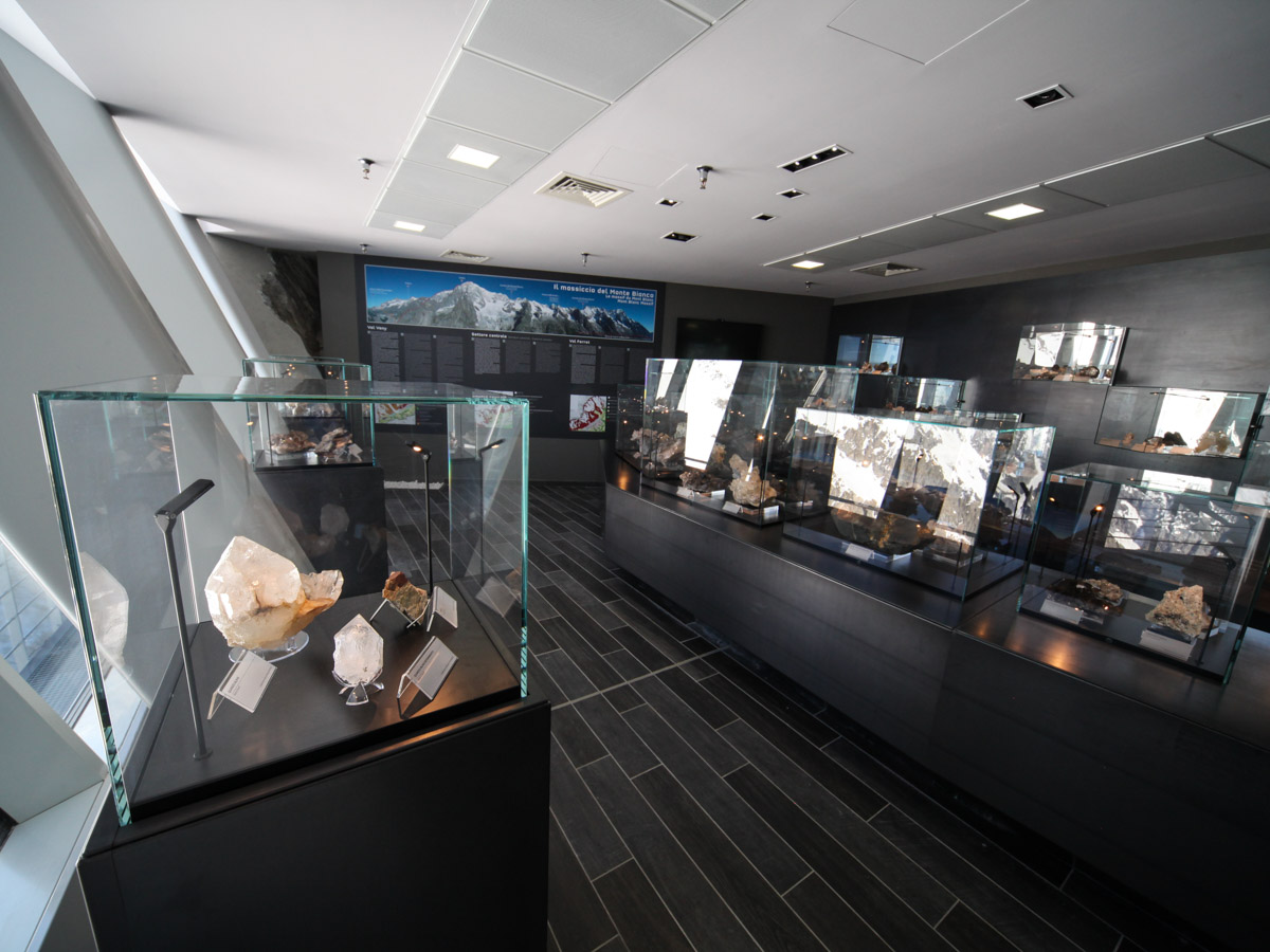 The main attraction is here: a circular scenic terrace 14 meters in diameter with a unique all around view over most of the highest peaks of the Western Alps: Mont Blanc, Monte Rosa, the Matterhorn, the Gran Paradiso and the Grand Combin. Inside, a crystal exhibition hall, a self service restaurant, a bar, and multimedia information points. Numerous multimedia screens located in all the stations inform tourists about the history of the place. Even with bad weather, coming here will not be a missed chance, but a rewarding visit and unforgettable experience where breathing “thin air” will not be the only memory.