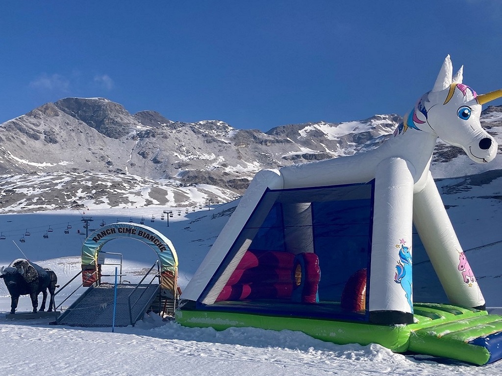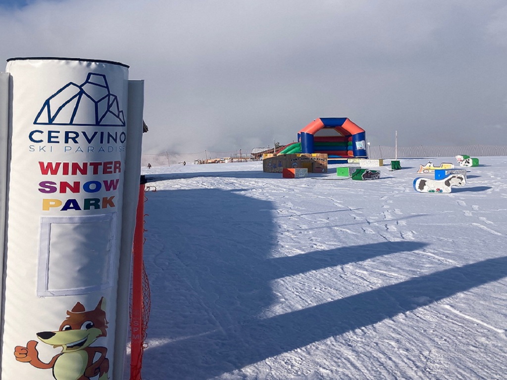 A small but well-equipped playground on the snow, located at the arrival of the Valtournenche – Salette cable car, at an altitude of 2,200 meters above sea level, overlooking the mountain ridge of the Grandes Murailles.