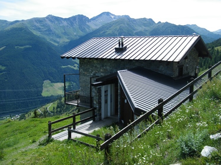 From the State Road SS27 for the Great St. Bernard, after the houses in Gignod, follow the fork for Allein to the right, go through the main villagel (Le Plan-de-Clavel) following signs for Dortoir Baravex, until the start of an unsurfaced road that leads to the Allein alpine pasture homes and therefore to Alp Baravex (path signed for snow boots). Leave the car close to an alpine pasture home and follow the unsurfaced road that will lead you to the bivouac in about 40 mins. It is located near a mountain pasture home just under the main unsurfaced road.