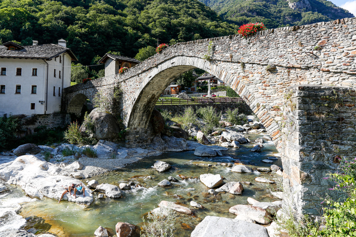 Surrounded by woods and traversed by the river Lys, Fontainemore greets visitors with its picturesque medieval bridge and the charming church of Sant’Antonio Abate, built on the rock beside the river.