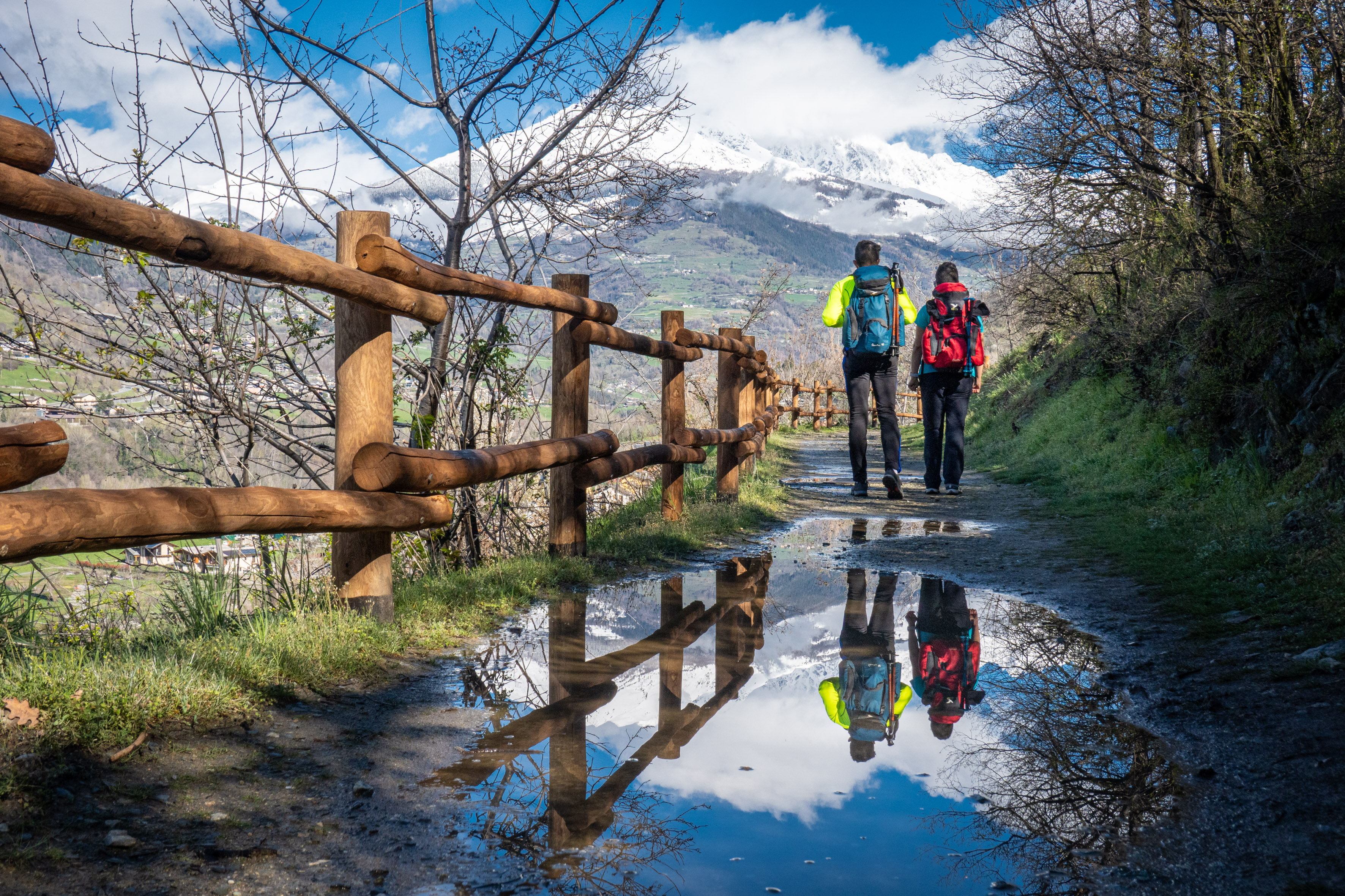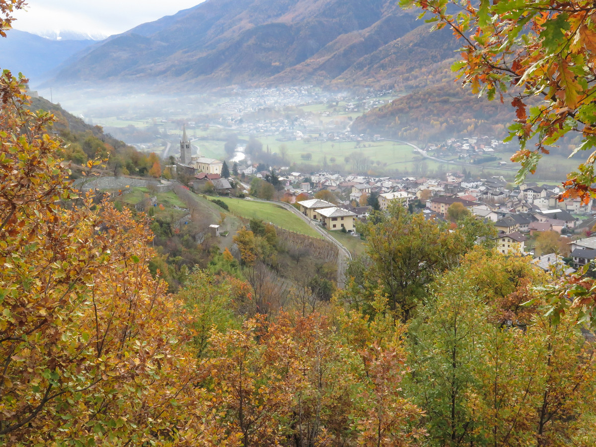 This route gradually climbs uphill from the valley, but stays within an area known for its quaint villages, pastures, and orchards. Here you will be able to enjoy secret views of the rural Aosta Valley frozen in time.