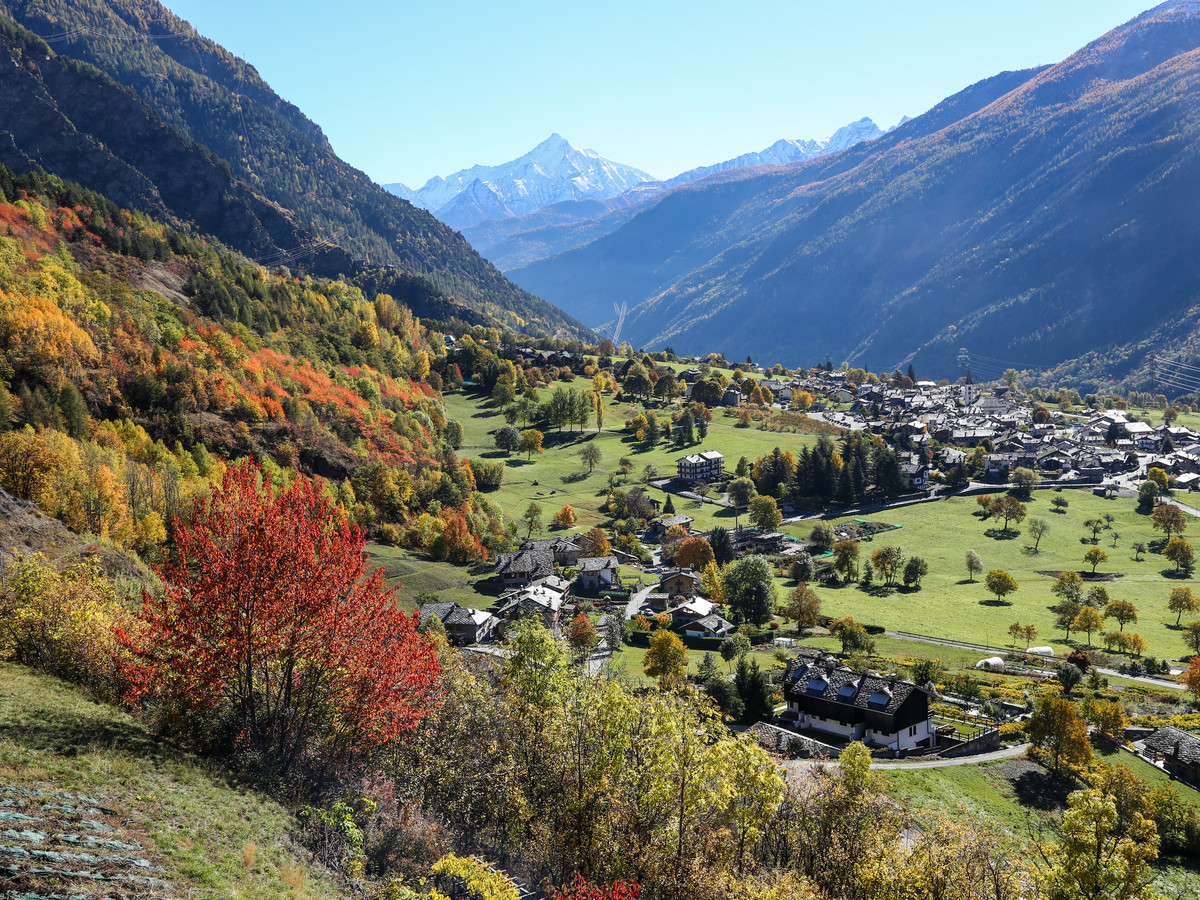 A long and breathtaking balcony that leads to La Salle, winding through large pastures, old mule tracks and tiny remote villages. This town in the Valdigne is surrounded by vineyards and pastures from which you can enjoy a stunning view of Mont Blanc.